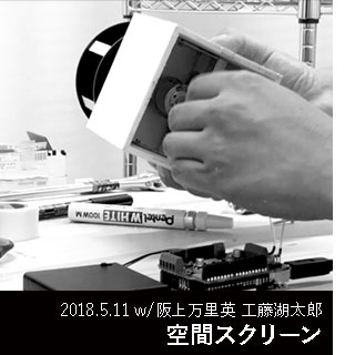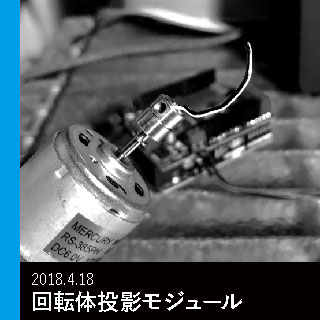 通勤中、映像を回転体にプロジェクションすることが可能なのではと考え、その足で秋葉原に向かい、D-4をもとに実装した。先端に取り付ける針金の形によって、2重にプロジェクションされてしまうことを防ぐため、スクリーン面となる外側を白く、内側を黒く塗装することで、1層のプロジェクションを可能にした。また、回転中は美しい像が浮かび上がるのに対し、静止すると無骨な針金になるギャップを面白く感じた。